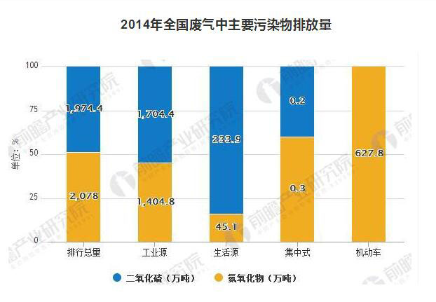 根據(jù)中國歷年環(huán)境統(tǒng)計公報數(shù)據(jù), 雖然近年來主要大氣污染物排放量有所下降,但排放量依然巨大,2014 年二氧化硫、氮氧化物排放總量分別為 1,974.4萬噸、2,078.0 萬噸,其中電力、鋼鐵、造紙、印染等行業(yè)是二氧化硫及氮氧化物的主要工業(yè)排放源。